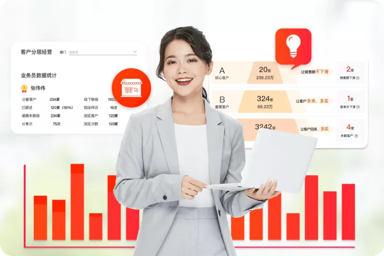 3.智能客户分析,核心/重要/普通客户分层运营,提产出、防流失;